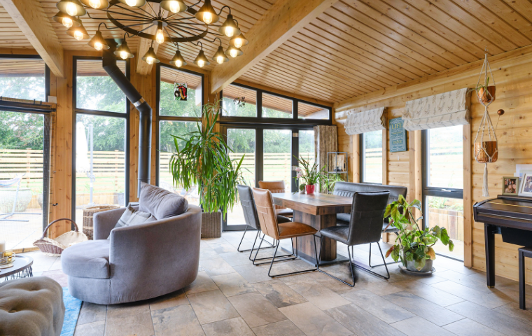 Norwegian Log annexes are highly energy-efficient as they are excellent at retaining heat and conserving energy. This is owing to the logs' natural insulation combined with modern cavity insulation. This combination, with the natural temperature control properties of the logs, means your granny annexe will stay cool in the summer and warm in the winter.