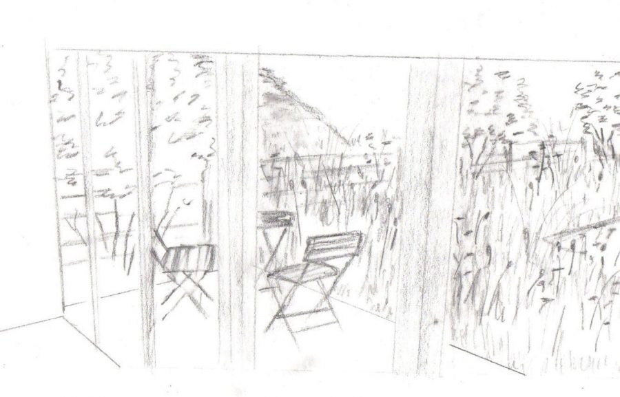 “It’s important to think about how this garden room will link with the space it’s in, as well as the mood you are trying to evoke. With such a fantastic view of the countryside, blurring the boundary fence by introducing plants with a naturalistic feel will make the landscape beyond appear as though it’s an extension of the garden. Garden designers call this using the ‘borrowed landscape’.