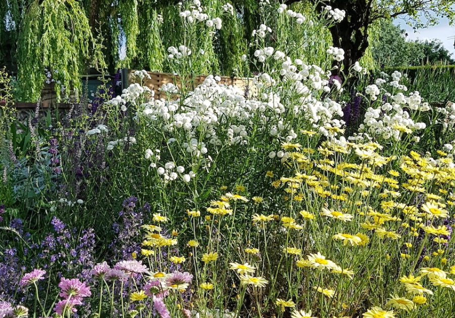 It is important to include a few well-placed roses too. Choose a variety that is repeat flowering, with a good scent. Dot them around where you can - and appreciate their heady scent (but nothing too formal, please!)