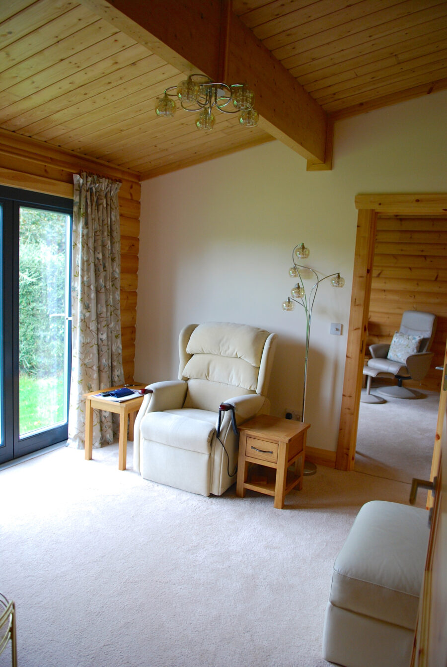The couple wanted a bespoke layout for their home, with his and hers sitting rooms to watch their own TV programmes undisturbed, plus a Jack and Jill bathroom, dressing area, two bedrooms, utility room, toilet, kitchen and decking area. As Peter is a talented cabinet maker, who is very experienced at working with wood, he liaised closely with Norwegian Log on the layout plans. “We felt as though we were able to design it ourselves internally which was wonderful,” says Maureen.