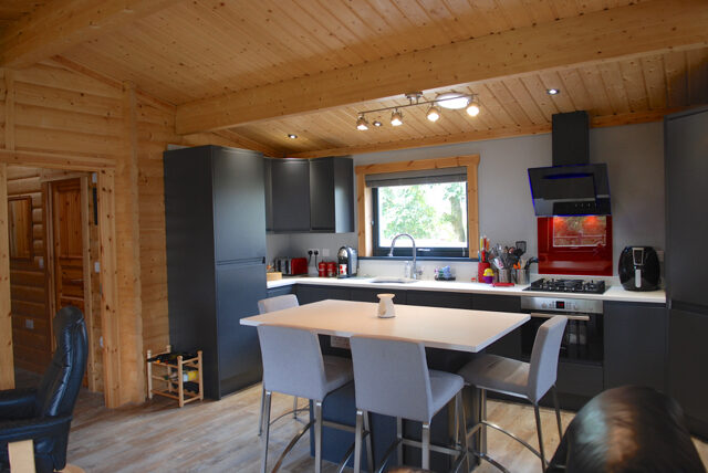 “I’d done some research and suggested to Kelly that ‘Wouldn’t it be nice if we could build a log cabin’. And that’s what happened!” laughs Dave, who is sitting in his smart new log annex sited in the large, leafy garden of Kelly’s new Somerset home. “It’s solved a major problem as to what I was going to do.”