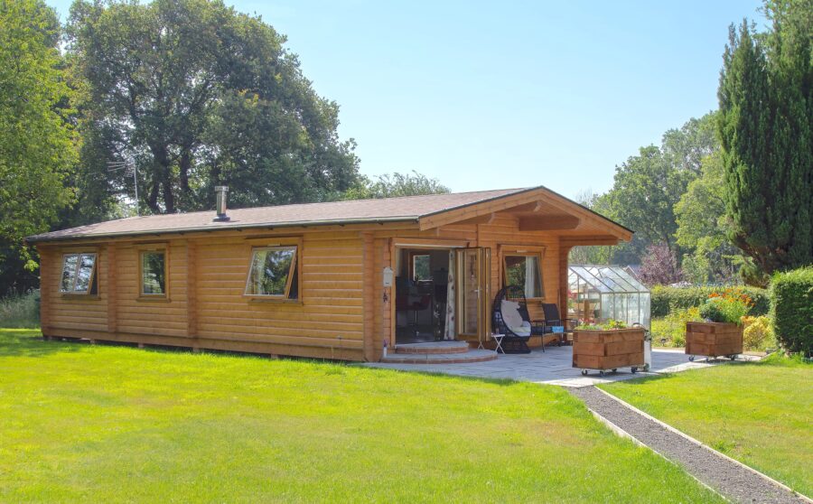 Muriel’s traditional-style Malvern cabin has two bedrooms, two bathrooms, a spacious open-plan living and kitchen area, plus a utility room and entrance hall. A path leads through the large garden to her private patio and decking area. “Everyone thinks it’s just lovely,” she says. “They step through the door and say, ‘Oh I like this, I want one of these’.”