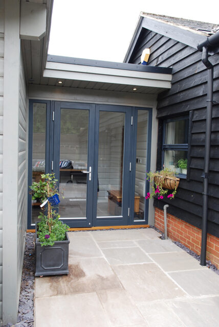 Erika and Joseph Borlase, plus their two children, are the lucky owners of this solid log building which has been cleverly added by Norwegian Log as an extension to their open plan, barn conversion home. With an internal access door from their kitchen, it also has its own external ‘front’ door and two sets of large bi-fold doors which look out onto the courtyard garden and vegetable parterre.