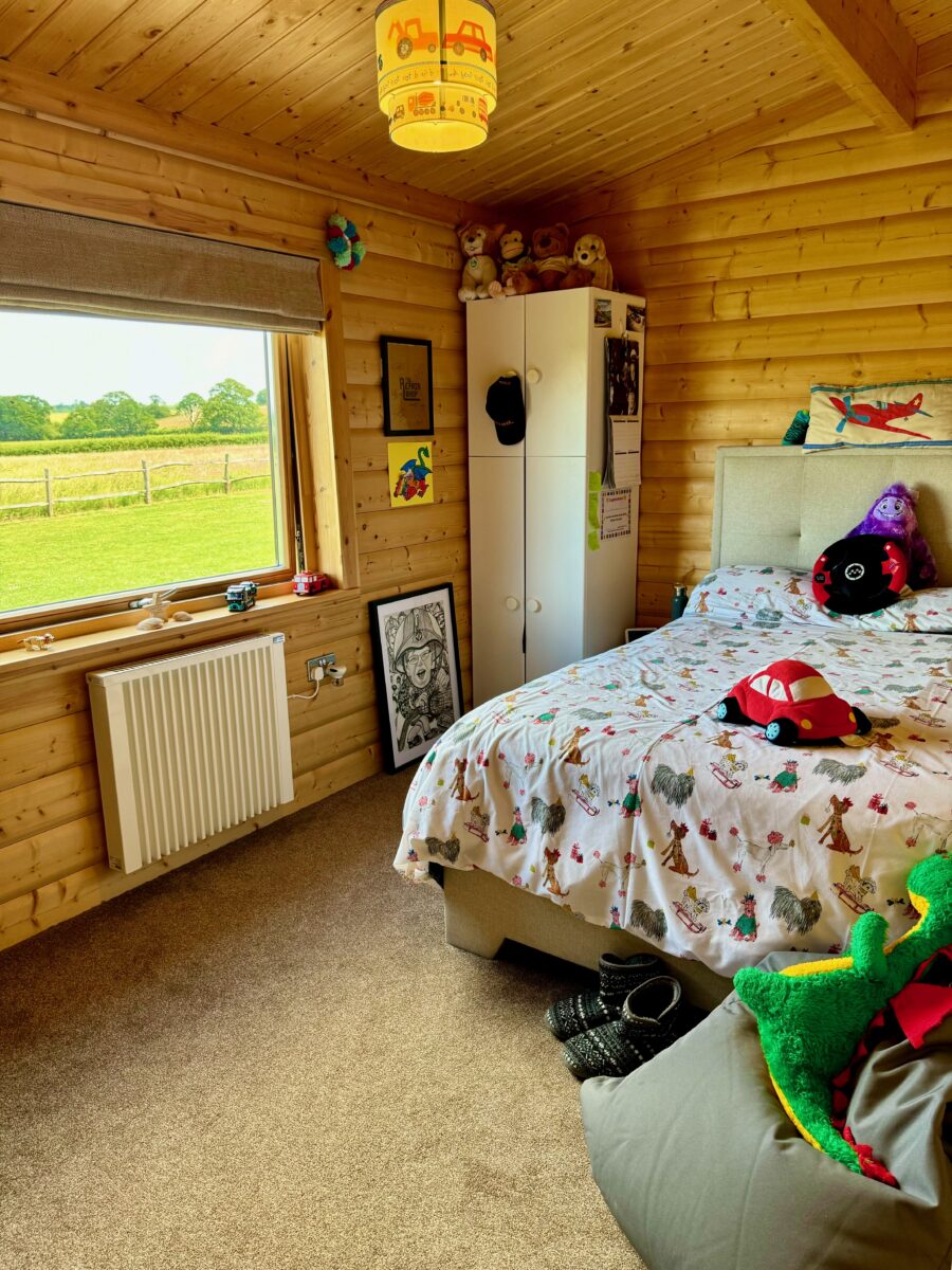 Their youngest son has additional needs and family life before their recent move to the log cabin had been difficult. “My son is disabled, and we were living nearby in a terraced house, sadly our home was not able to be adapted to suit his needs. The stairs were not safe for him, the noises from the neighbours caused him stress, and his safety was a huge concern because he could have just wandered out the front door,” she explains. “We looked at bungalows, but, as we live in Surrey, they were beyond us.”