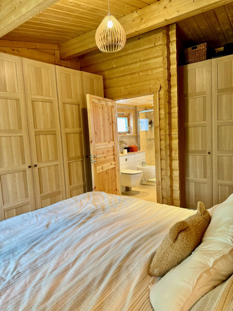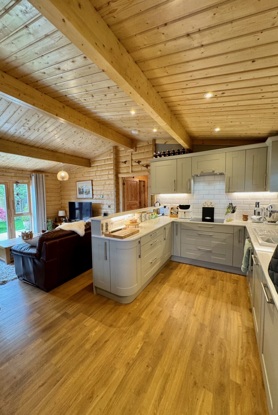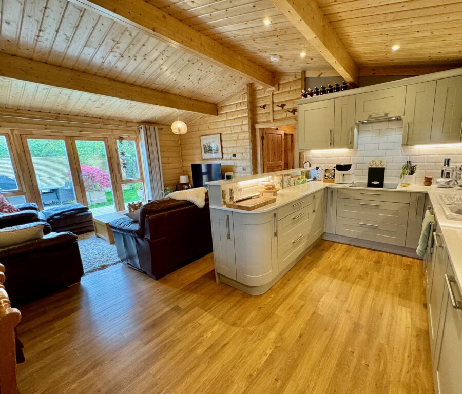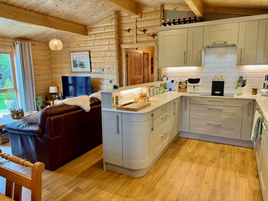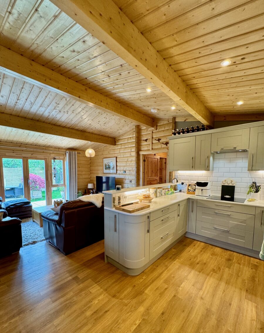 The bespoke layout of the lodge suits the couple’s needs perfectly, and with futureproofing on their minds, they have ensured the design is as accessible as possible, including a raised toilet height and ramped access to the outdoors.