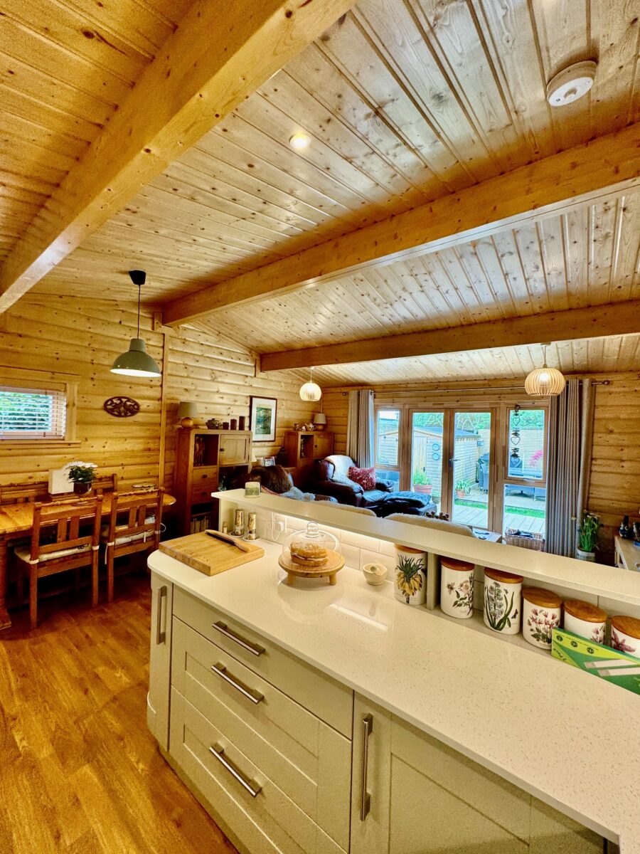 The couple are now the proud owners of a stunning log annex positioned at the end of their son’s Cambridgeshire garden. With a separate entrance and their own outdoor space, they have all the benefits of being close, but not too close, if help is ever needed.
