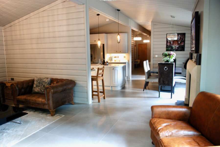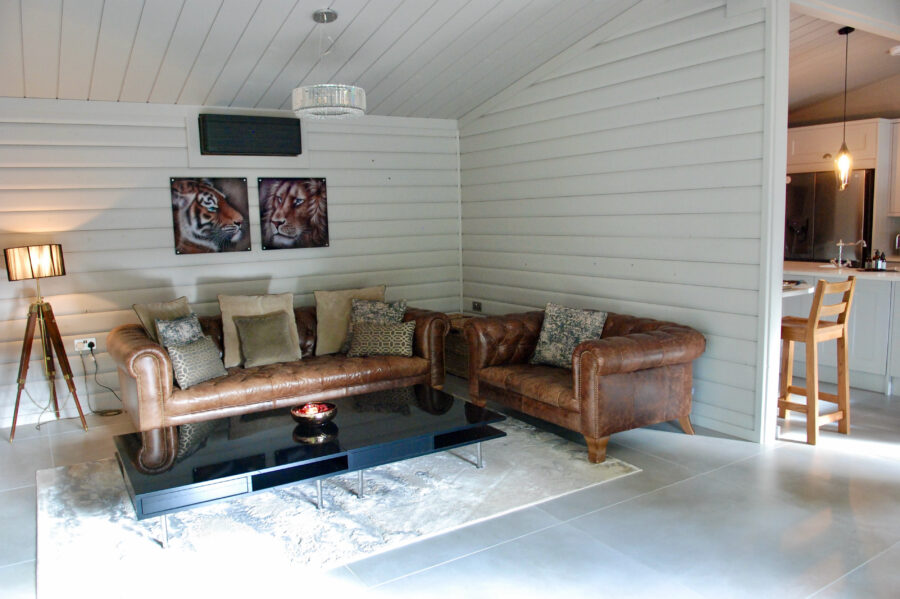 Remarkably, Martin and Tracey never intended to live in the cabin which is sited in the large garden of a substantial, neighbouring house which they’ve owned for over a decade. Their 20m x 6.8m Norwegian Log cabin was originally intended for two of their elderly parents during lockdown, however as restrictions eased, they realised it would be more suited to their daughter and two young grandsons.