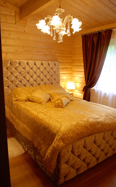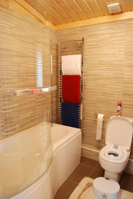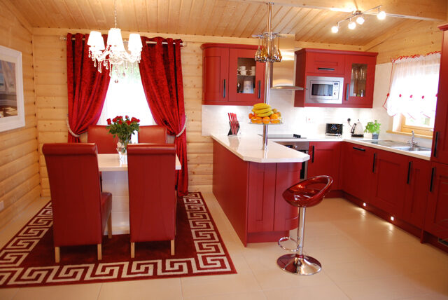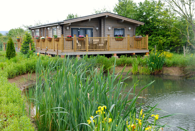 It took just six weeks to erect the Alpine log home log home which is now occupied by site supervisors Yuri and Victoria, and their young daughter. “Our staff were involved with the design at the planning stage and were really pleased with the team that built it and the quality of the build,” says Roly. A sleek open plan kitchen/living area leads out onto decking that overlooks the neighbouring pond. The building also boasts a family bathroom and two spacious bedrooms.